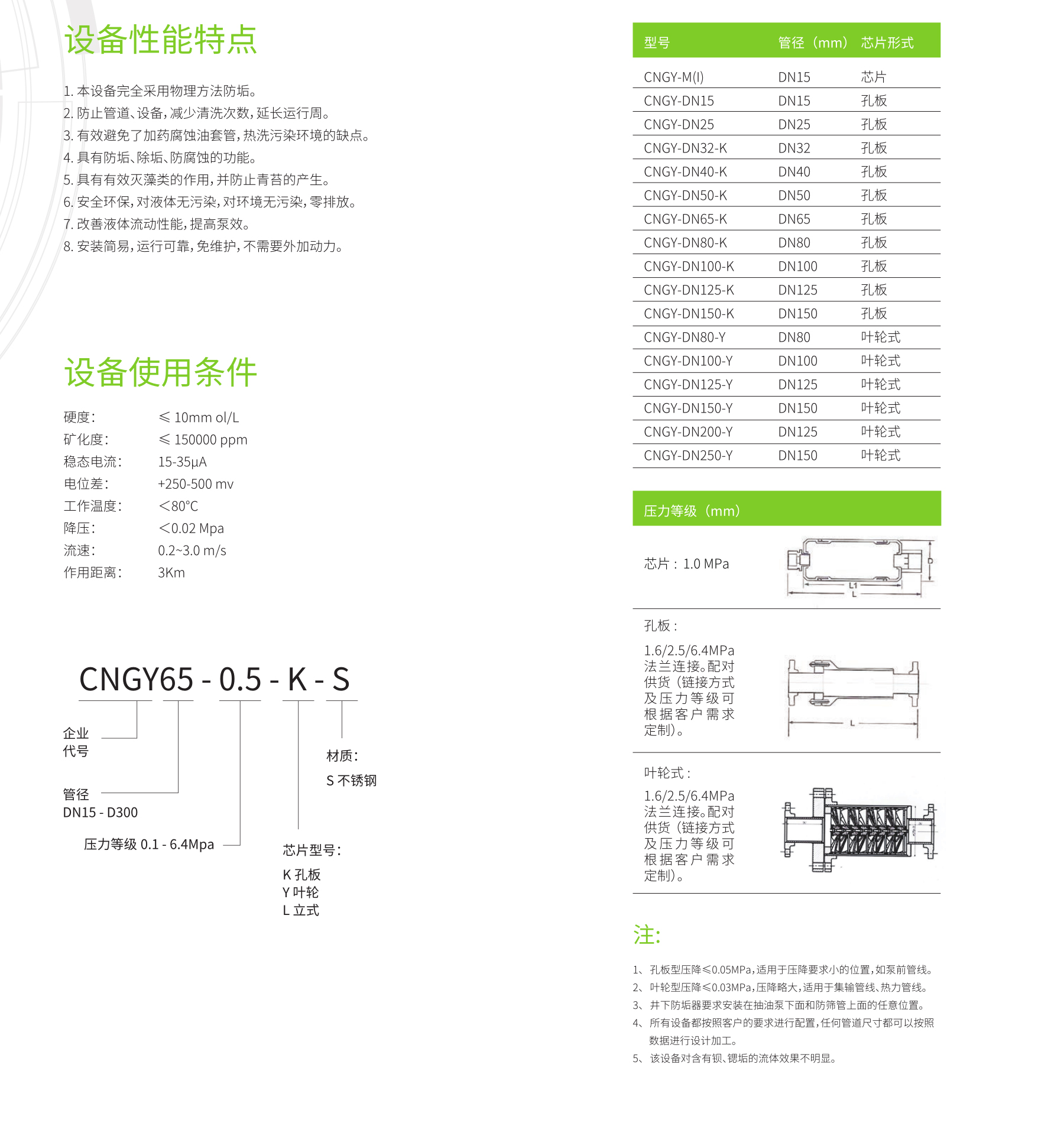 1. 本设备完全采用物理方法防垢。2. 防止管道、设备,减少清洗次数,延长运行周。